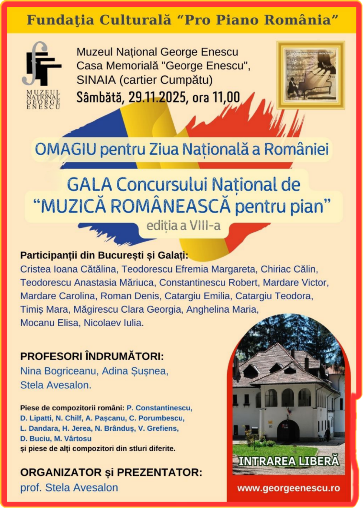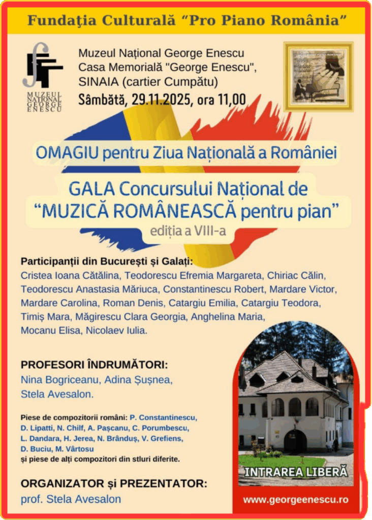 ”MUZICA ROMANEASCA pentru PIAN”, editia aVIII-a, 24.11.2025